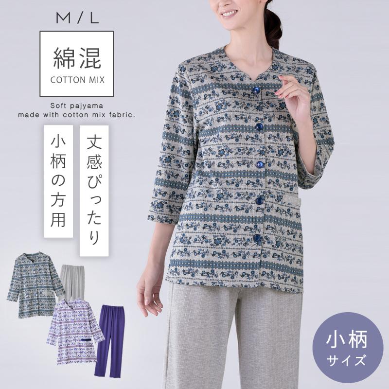 パジャマ 長袖 レディース 身長146 154cm 8分袖 花柄 小柄 身長 低い 低 身長 低身長 小さいサイズ ノーカラー 女性用 春 夏 秋 前開き 上下 綿 ポリエステル チ ココチのくらし雑貨店 通販 Yahoo ショッピング
